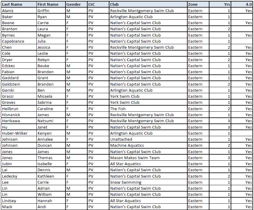 The following PVS Athletes were named by USA Swimming to the 2013-2014 Scholastic All America Team.