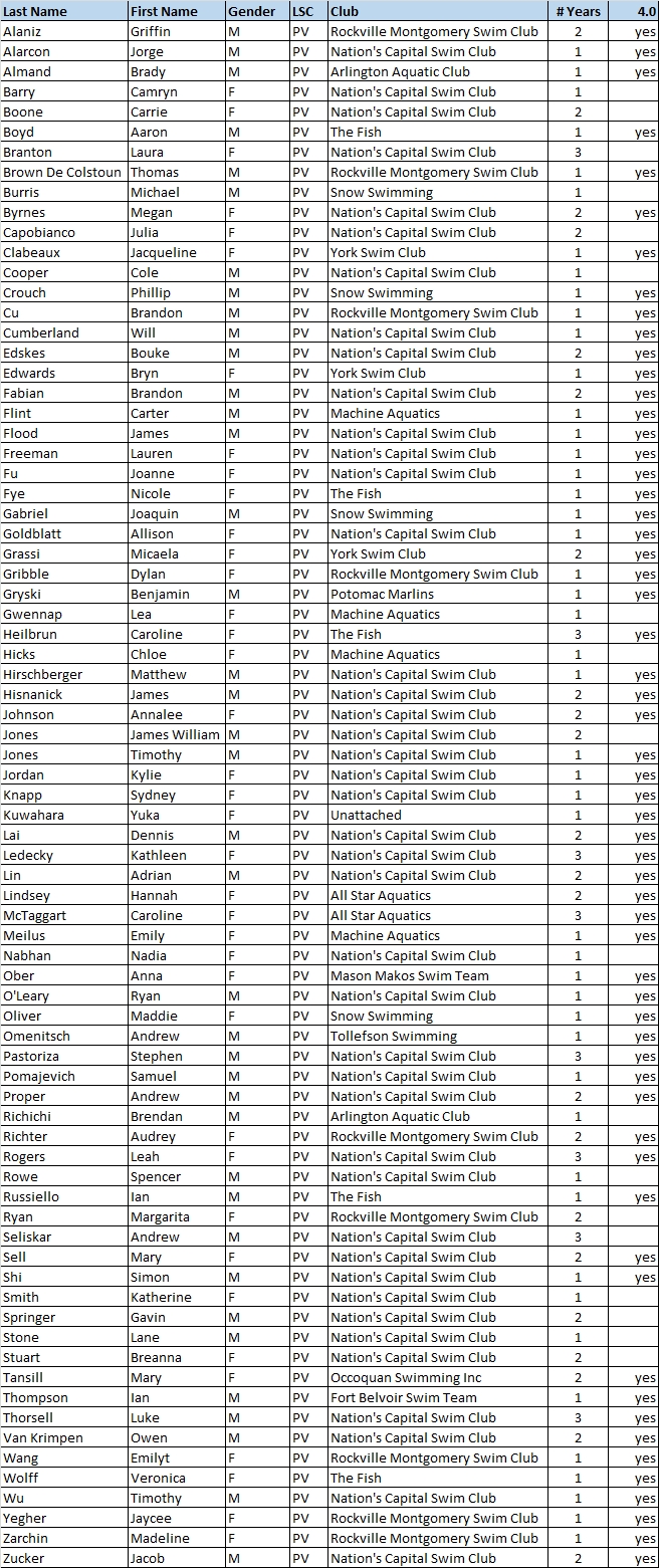 The following PVS Athletes were named by USA Swimming to the 2014-2015 Scholastic All America Team.