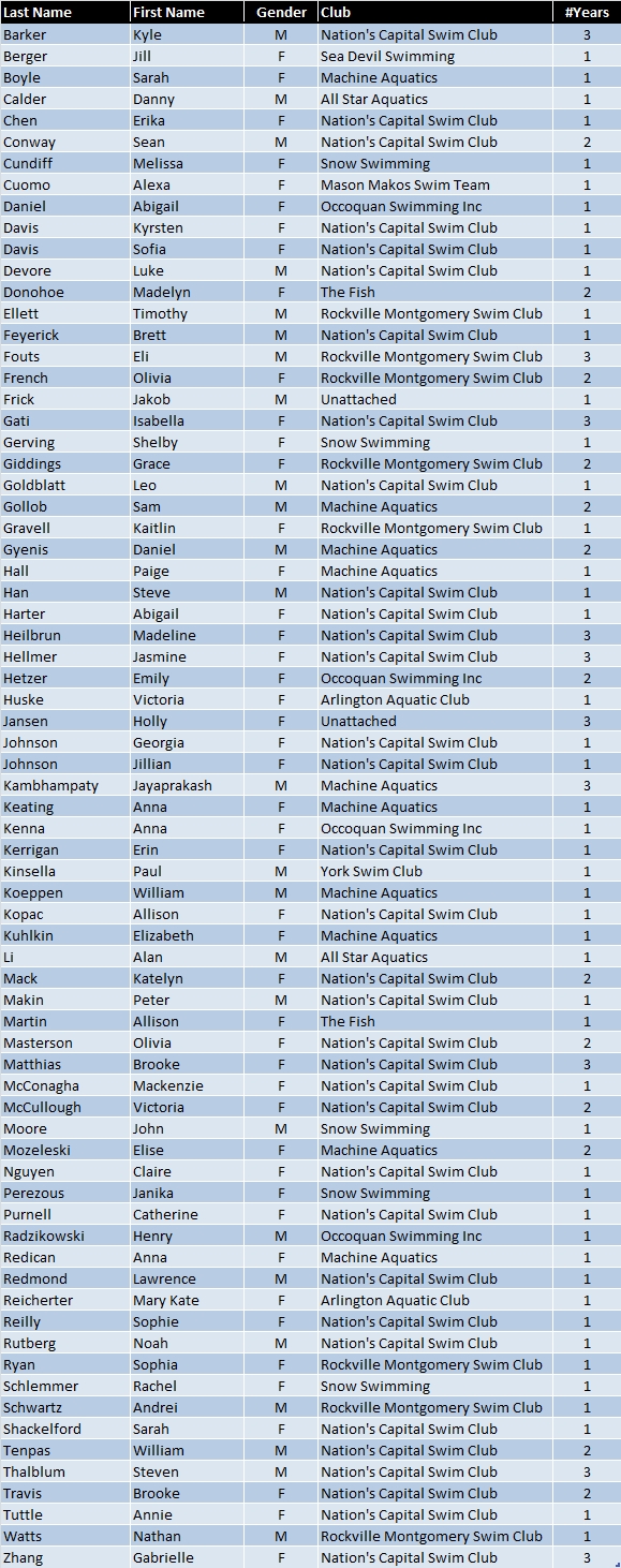 The following PVS Athletes were named by USA Swimming to the 2017-2018 Scholastic All America Team. Complete Lists: Girls, Boys