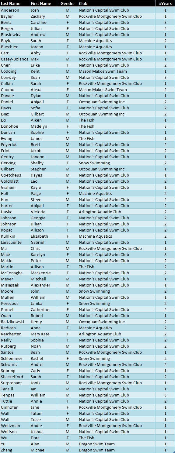 The following PVS Athletes were named by USA Swimming to the 2018-2019 Scholastic All America Team. Complete Lists: Girls, Boys